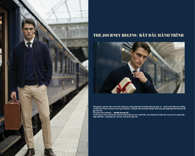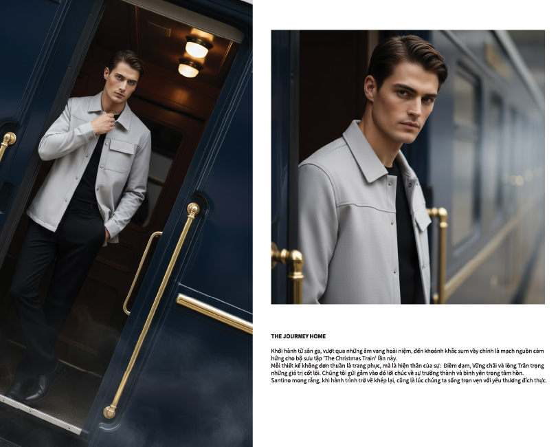 Lấy cảm hứng từ hình ảnh chuyến tàu cuối năm, bộ sưu tập thời trang nam Giáng Sinh của Santino được xây dựng như một hành trình cảm xúc, phản chiếu trọn vẹn tinh thần của người đàn ông hiện đại: bản lĩnh, sâu sắc và luôn hướng về gia đình.